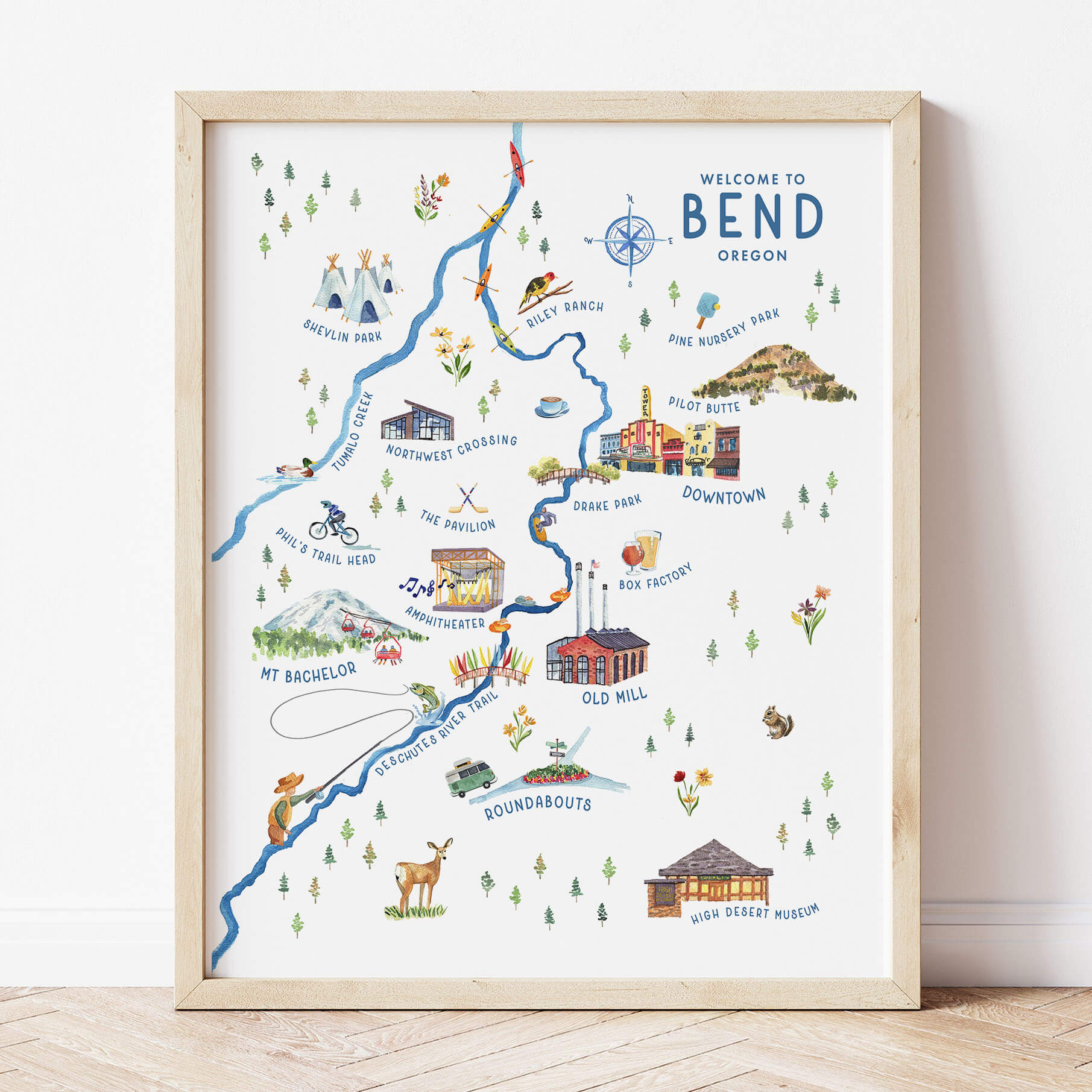 Bend, OR Watercolor Souvenir Map by Watercolor Wednesday